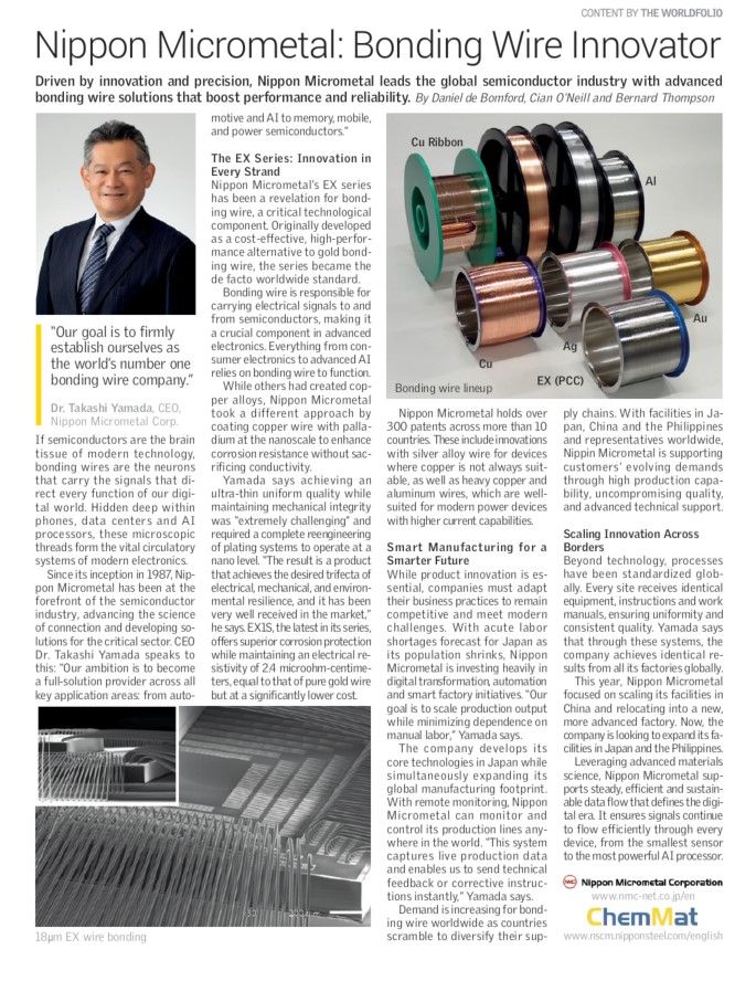 The interview article of Dr. Yamada, President of Nippon Micrometal Corporation was published in the U.S. magazine November 28 2025, Newsweek International.